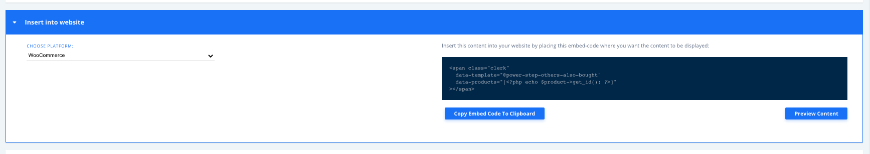 Para agregar tus propios elementos de Recommendations a las páginas anteriores, recuerda reemplazar el código dentro de con el código embed proporcionado en tus Recommendations Elements en my.clerk.io, como abajo: